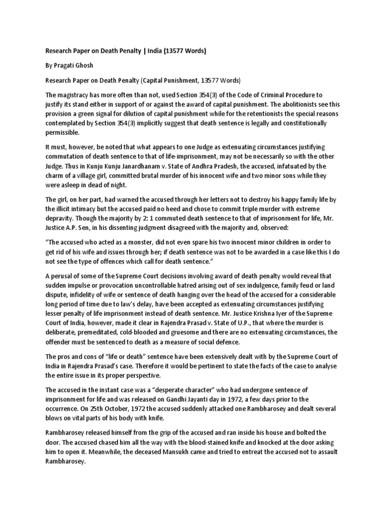 The FBI has found the states with the death penalty have the highest murder rates. Innocent people are too often sentenced to death. Sinceover people have been released from death rows in 26 states because of innocence. Nationally, at least one person is exonerated for every 10 that are executed. Inpro death penalty essays, the Supreme Court declared that under then-existing laws "the imposition and carrying out of the death penalty… constitutes cruel and unusual punishment in violation of the Eighth and Fourteenth Amendments. GeorgiaU, pro death penalty essays.